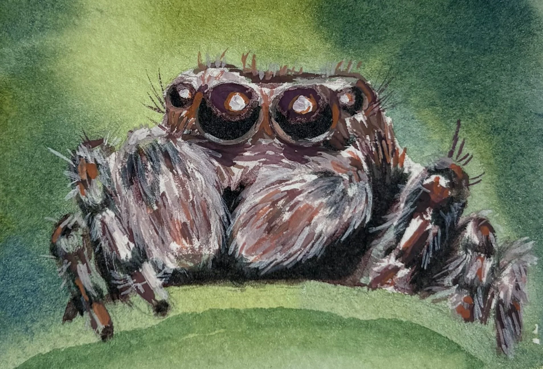 Petty Frogger is a watercolor and gouache painter based in Northern Virginia. She loves to paint little guys: spiders, hermit crabs, snails, and all kinds of other crawly cuties.